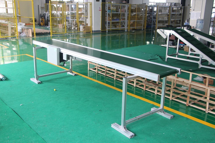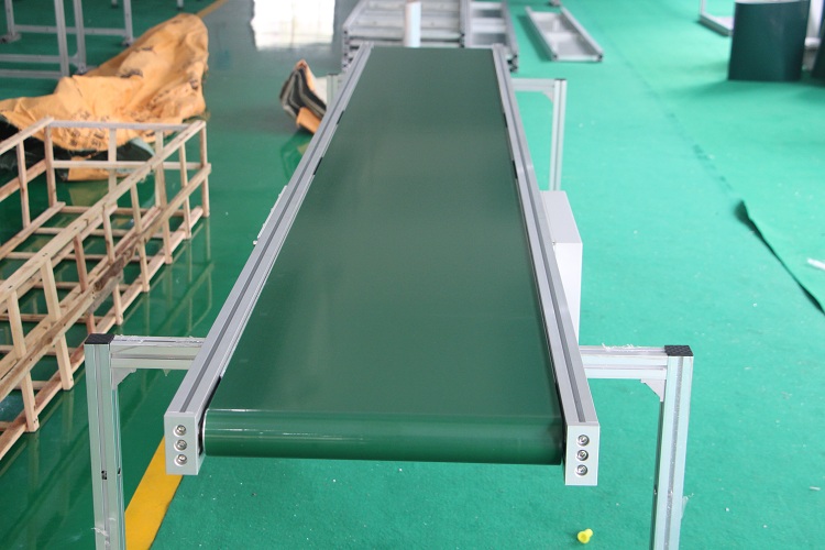 皮帶線可輸送的物料種類繁多,既可輸送各種散料,也可輸送各種紙箱、包裝袋等單件重量不大的件貨,用途廣泛。結構形式多樣,有槽型皮帶機、平型皮帶機、爬坡皮帶機、側傾皮帶線、轉彎皮帶線等多種形式,輸送帶上還可増推板、側擋板、裙邊等附件、能滿足各種工藝要求。