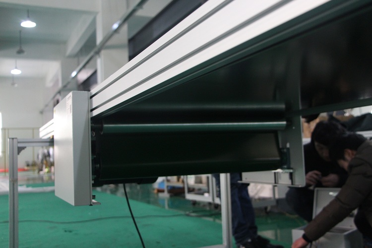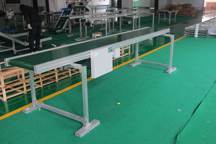 皮帶線廣泛應用于家電、電子、電器、機械、煙草、注塑、郵電、印刷、食品等各行各業,物件的組裝、檢測、調試、包裝及運輸等。線體輸送可根據工藝要求選用:普通連續運行、節拍運行、變速運行等多種控制方式;線體因地制宜選用:直線、彎道、斜坡等線體形式。